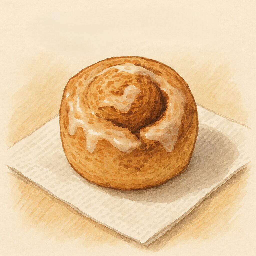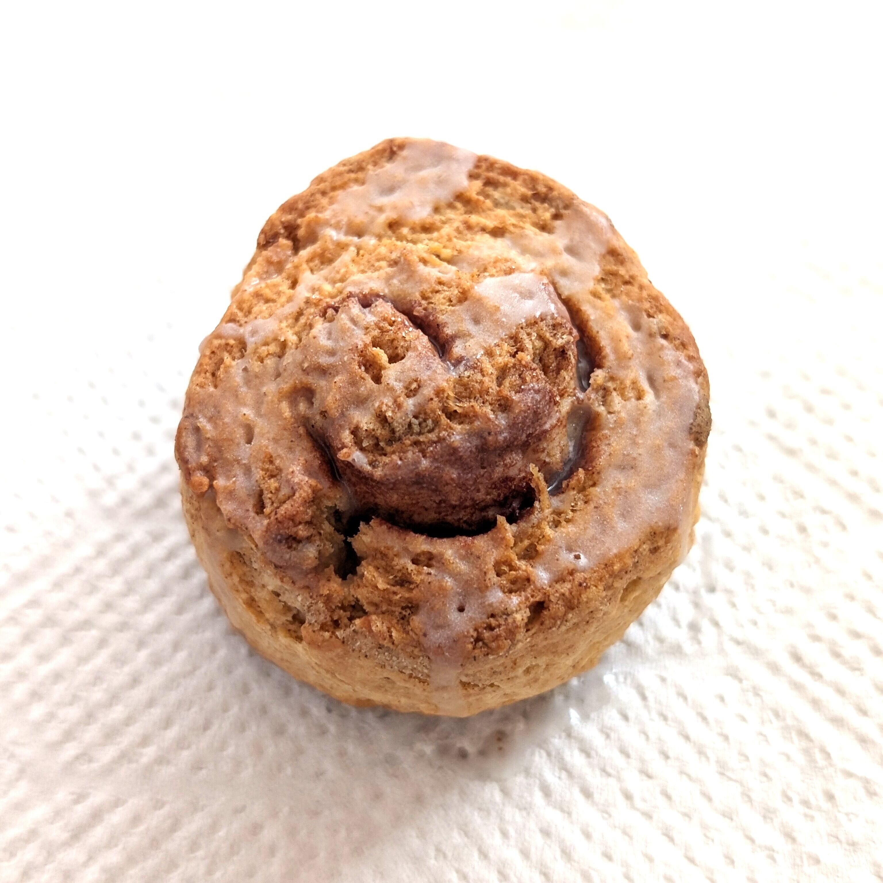 プレーン生地でシナモンシュガーを巻き込み、豆乳グレーズドでコーティングしました。